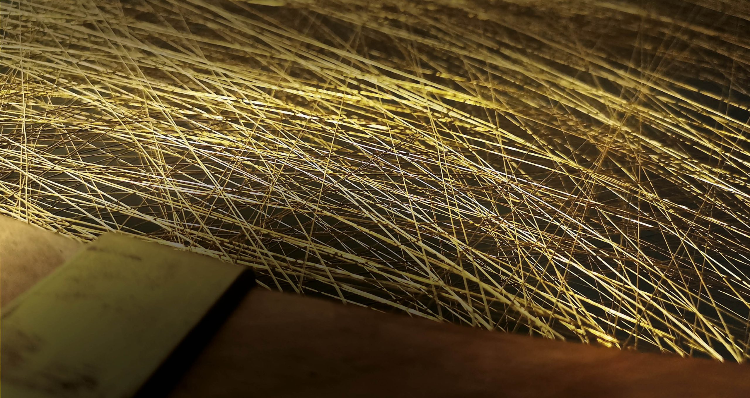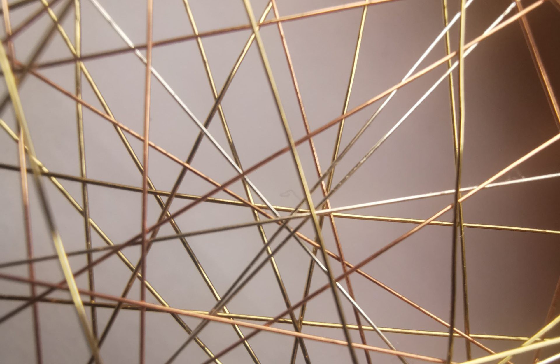 Les Tambours lumineux sont tissés de centaines de fils fins qui réfléchissent la lumière. En laiton, en cuivre ou métal blanc, les fils sont utilisées en diverses proportions pour donner à la lumière son caractère. La lumière du cuivre est chaude et enveloppante, celle du laiton est solaire et charismatique, celle du métal blanc enfin, apporte une touche raffinée et précieuse.