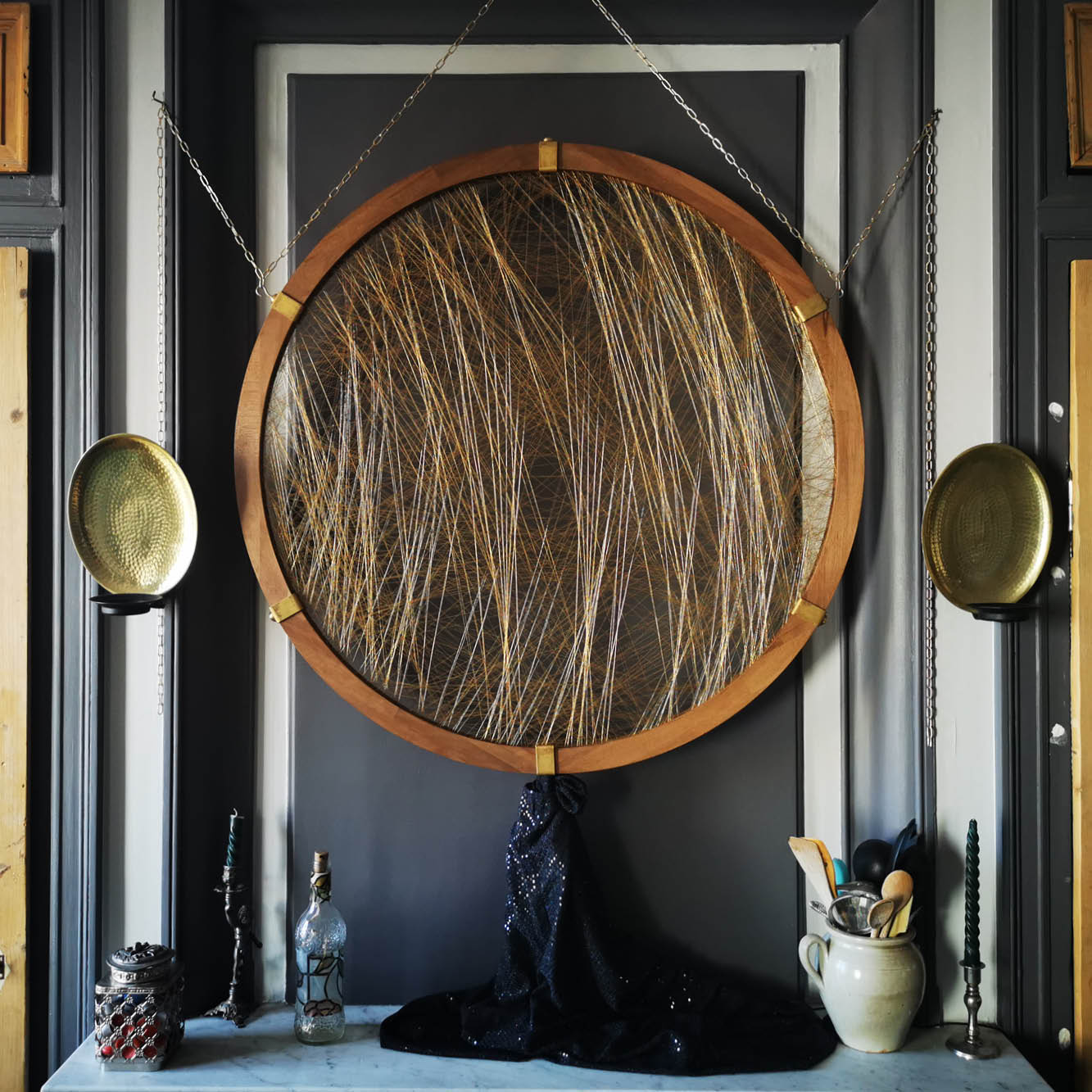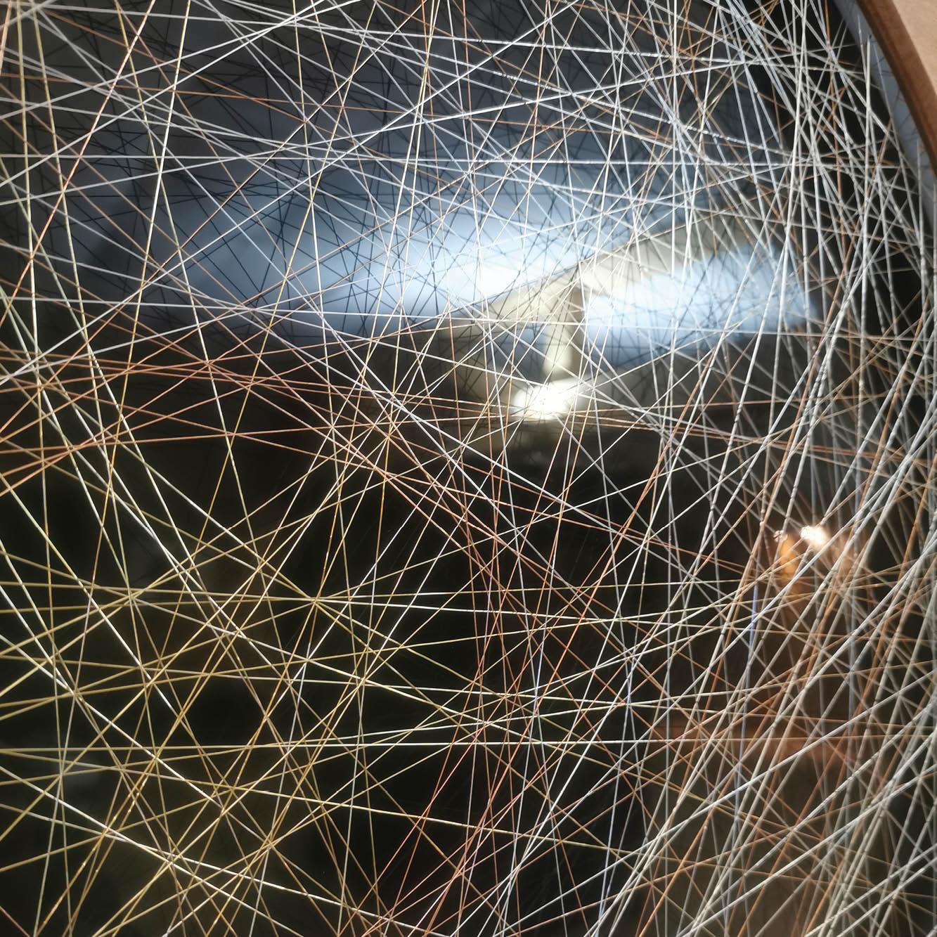 Les Tambours lumineux sont au carrefour de l’art et de l’artisanat : le cadre est travaillé comme une pièce d’artisanat tandis que certaines figures à tisser sont le fruit d’une recherche artistique. Ainsi, en fonction de son tissage, le Tambour est un Luminaire d’art, ou une Oeuvre d’art signée (un « Tambour des Astres »). Les Luminaires d’art reçoivent un tissage aléatoire ou un tissage géométrique. Les Tambours des Astres sont quant à eux tissés avec les Mutagrammes, que j’ai créés. Les Mutagrammes existent en nombre infini, et ceux qui peuvent être tissés se comptent par millions. Visitez la page des Mutagrammes pour découvrir un échantillon ou générer vos Mutagrammes (# page en construction #).