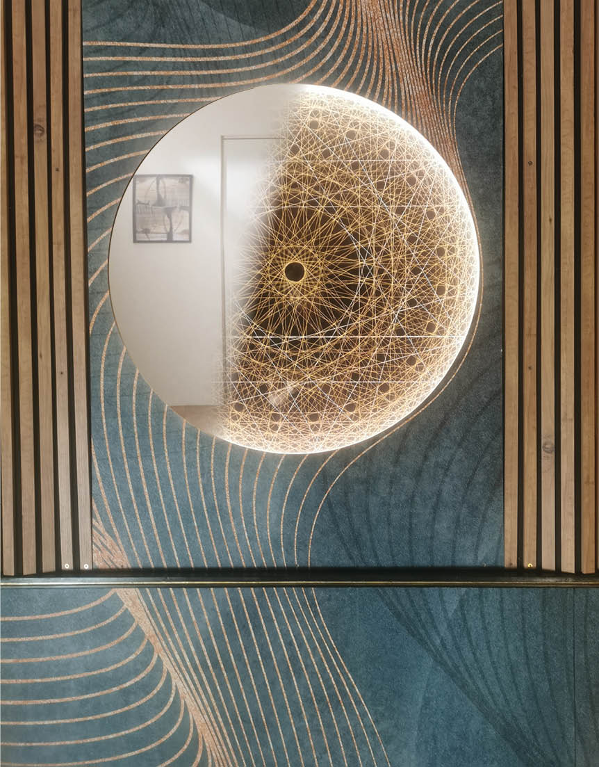 Cette version encastrable habille de façon originale les espaces professionnels (réceptions, boutiques, salon de coiffure…) aussi bien que des intérieurs privés.