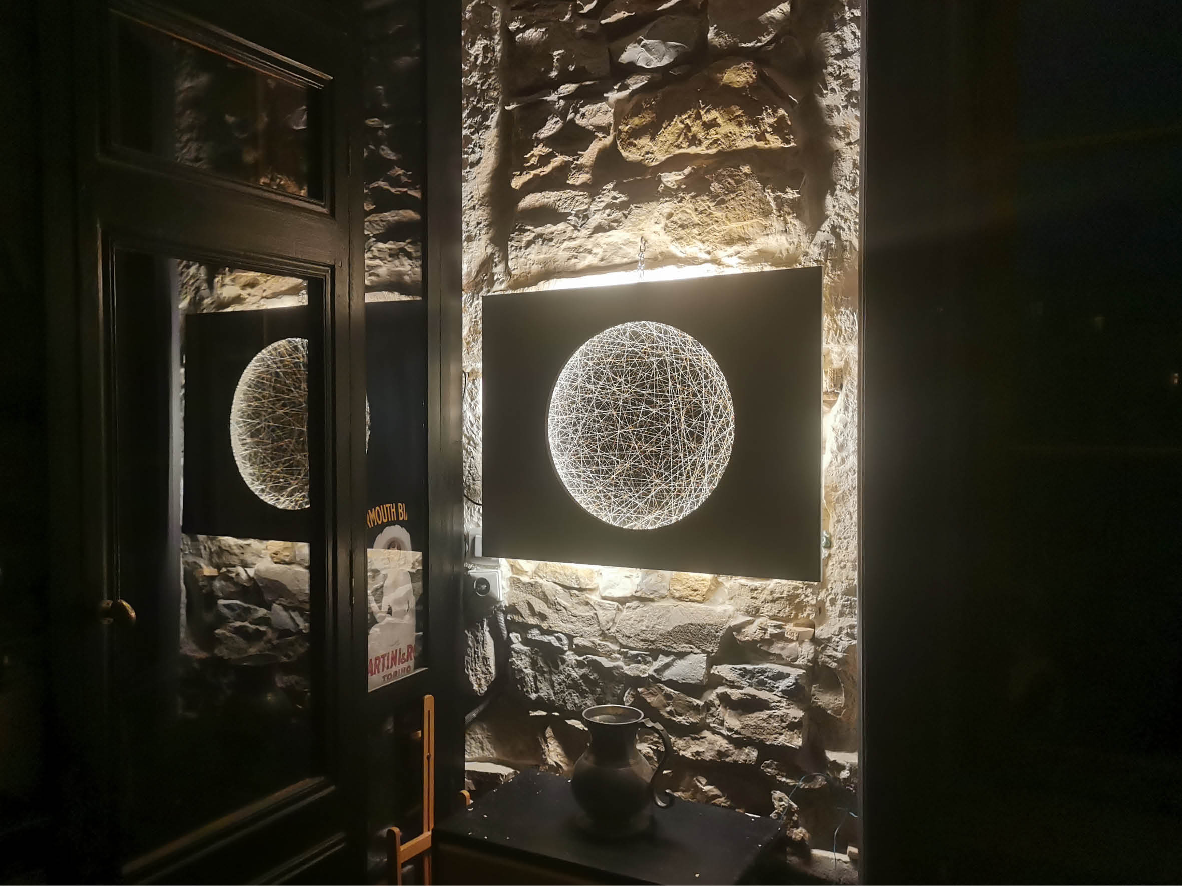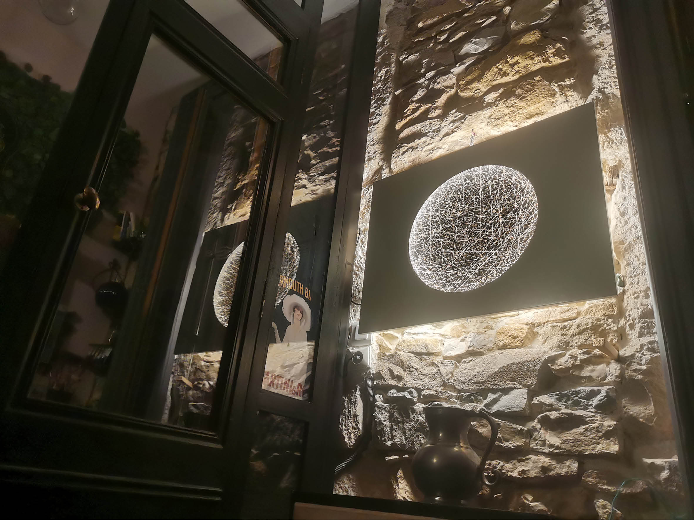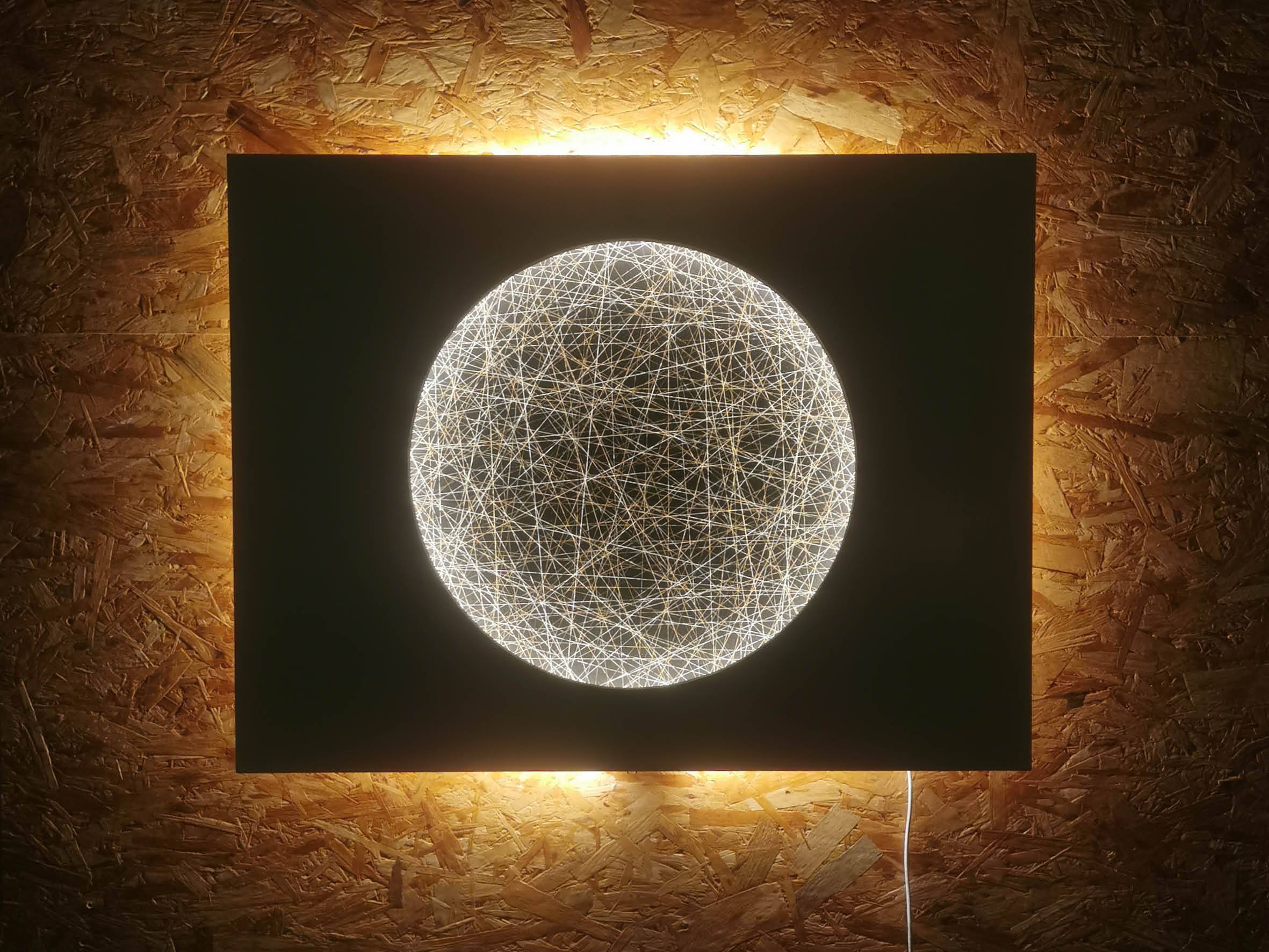 Je réalise également des Tambours lumineux sur panneaux rectangulaires en bois, corten (métal rouillé), solid surface (type corian©)… et potentiellement tout matériau que vous souhaitez, sous réserve de faisabilité. Ce type de Tambour s’accroche en applique à la manière des Tambours Radian et Rustica (voir ci-avant).